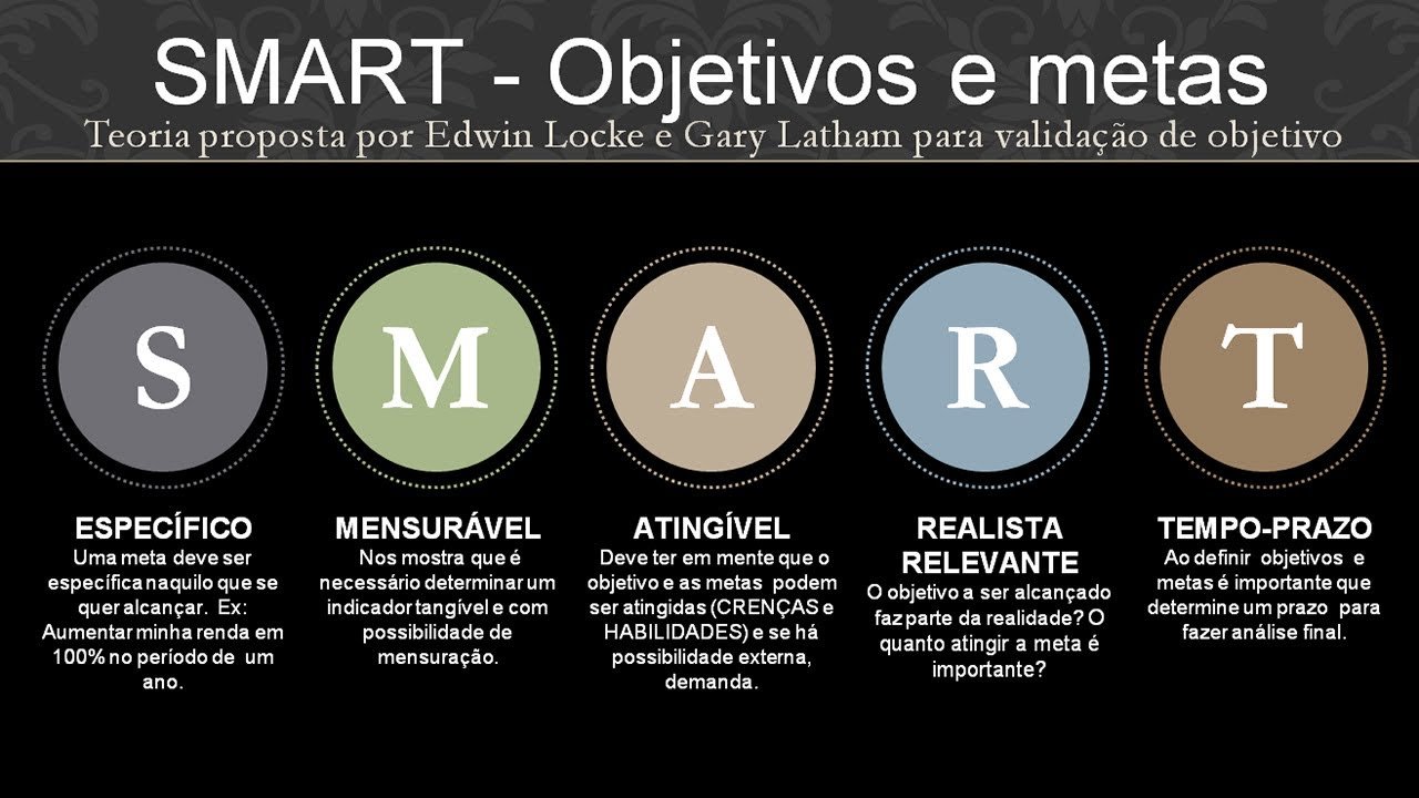 Uma técnica de liderança no trabalho é a adoção da criação de objetivos SMART, que são metas: